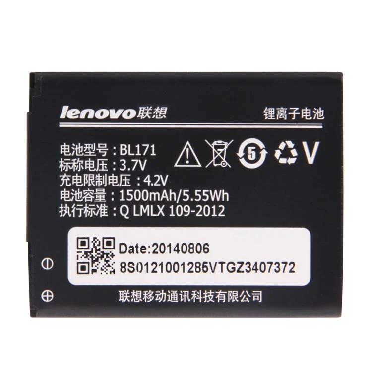 3.7V 1500mAh 5.55Wh Lenovo BL171 Cell Phone Battery for Lenovo BL171 Lenovo A60, A65, A500, A356, A376, A390, A390T, A370E Smartphones Batteries