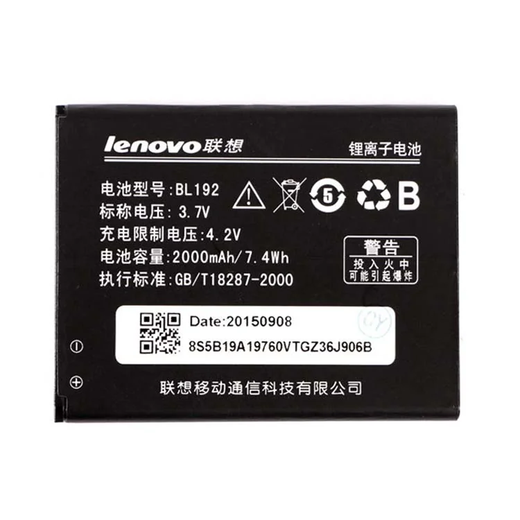 3.7V 2000mAh 7.4Wh Lenovo BL192 Cell Phone Battery for Lenovo BL192 Lenovo A529 A680 A590 A300 A750 A388T Smartphones Batteries